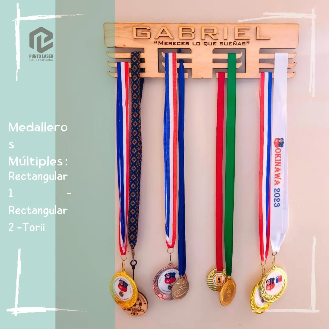 Medallero con capacidad para 36 medallas (3 por brazo).